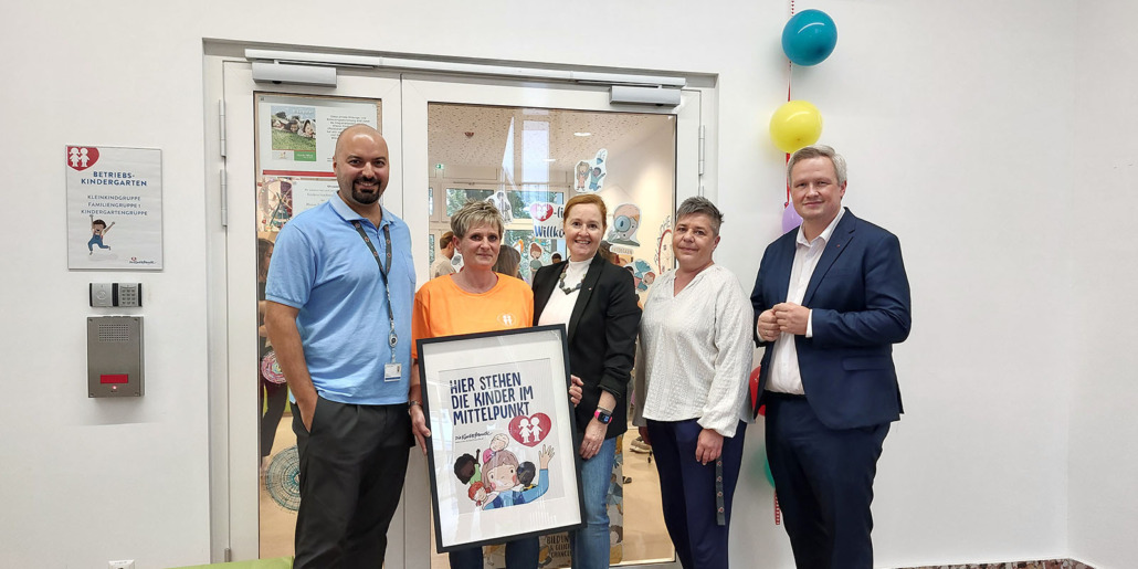 Die Leitung des Kindergartens, Ingrid Rabl, und die Geschäftsführung der Kinderfreunde, Daniel Bohmann und Alexandra Fischer waren anwesend und betonten in ihren Grußworten die Bedeutung dieses Angebots für die Vereinbarkeit von Familie und Beruf. Der neue Kindergarten soll unseren Mitarbeiter*innen eine verlässliche und qualitativ hochwertige Betreuung ihrer Kinder bieten.